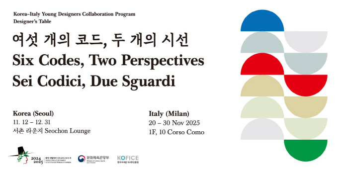 < 서촌라운지 기획전시 '디자이너스 테이블' 운영 > ㅇ 일시 : 2025. 11. 12.(수) ~ 12. 31.(수) ㅇ 장소 : 서촌 라운지(종로구 필운대로 27-4) ㅇ 시간 : 11:00~19:00(금요일 12:00~20:00) ※ 월요일, 공휴일 휴무 ㅇ 내용 : 한국-이탈리아 청년 디자이너 12명이 두 나라의 식문화 워크숍을 통해 개발한 디자인 작품 전시 ㅇ 참여 브랜드/작가 - 신중연 : https://www.instagram.com/s.jungyeon - 줄리아 베키아토(수리) : https://www.instagram.com/suri___studio - 이은아 : https://www.instagram.com/euna_awardon - 마라 브라가뇰로 : https://www.instagram.com/maragold - 정지수 : https://www.instagram.com/peace_jisu - 말리사 마라스코 : https://www.instagram.com/marlisamarasco - 나희연 : https://www.instagram.com/l_i_o_n___ - 줄리아 데 프랑코 : https://www.instagram.com/jvliadesign - 김정현 : https://www.instagram.com/Product_hyun - 굴리엘모 브람빌라 : https://www.instagram.com/guglielmo.brambilla - 설수빈 : https://www.instagram.com/subin.seol - 잔루카 세스티니 ㅇ 문의 : 서촌 라운지(02-736-7909) ※ 서촌 라운지 인스타그램 : https://www.instagram.com/seochon_lounge